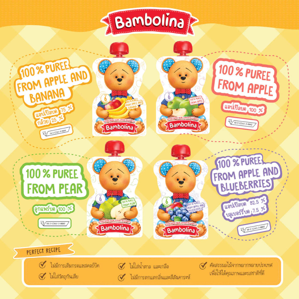Bambolina อาหารเด็ก รูปแบบผลไม้บด 100%