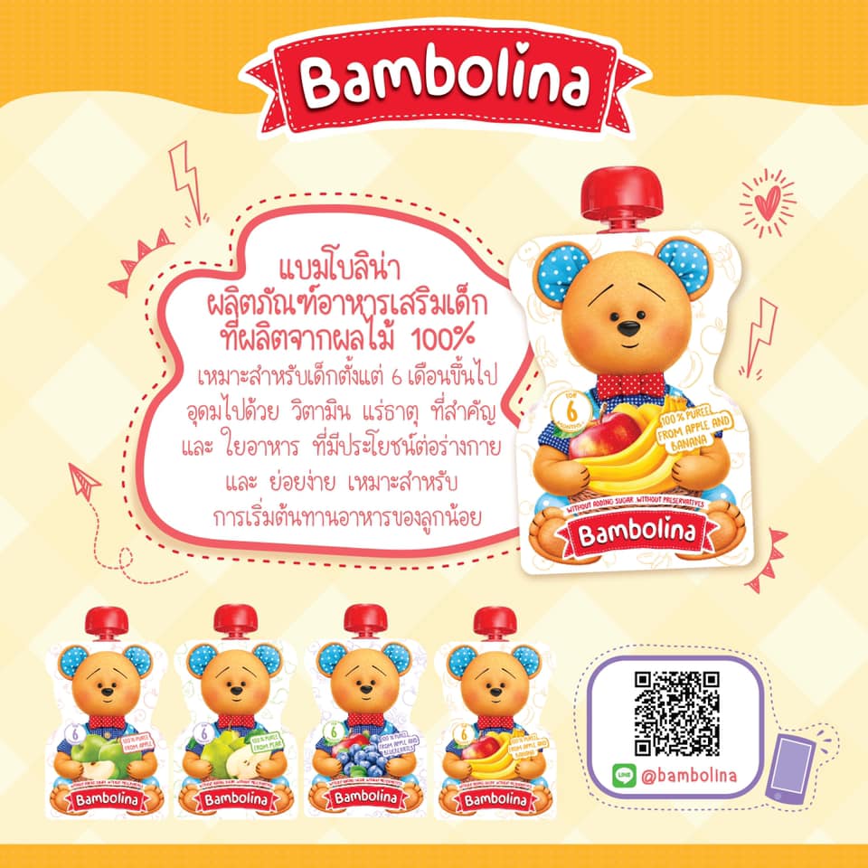 แบมโบลิน่าเป็นผลิตภัณฑ์อาหารเสริมเด็กที่ผลิตจากผลไม้ 100 %