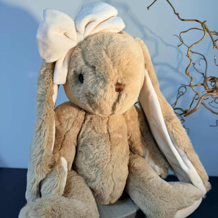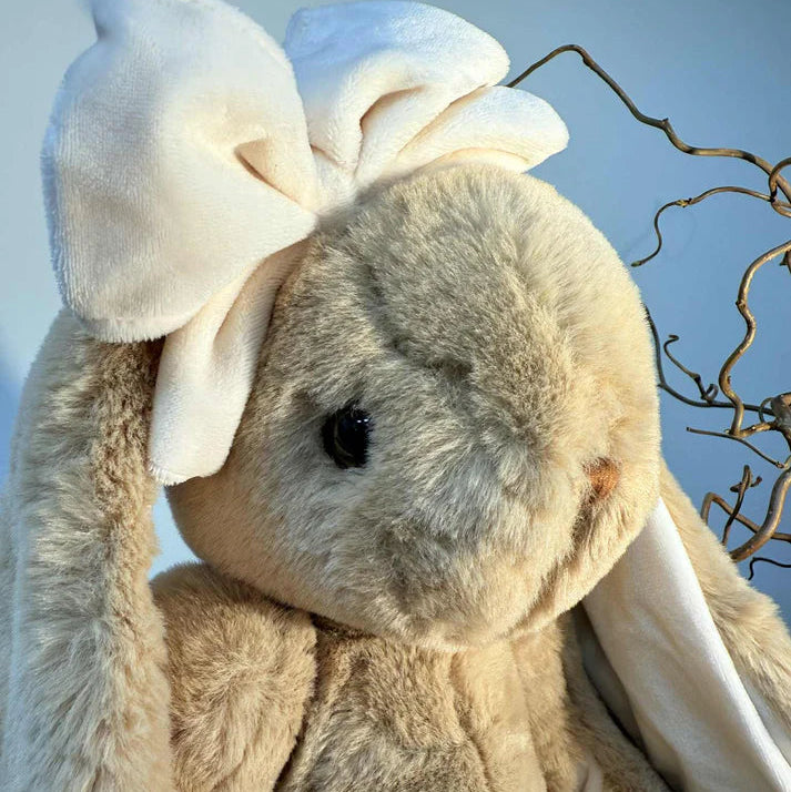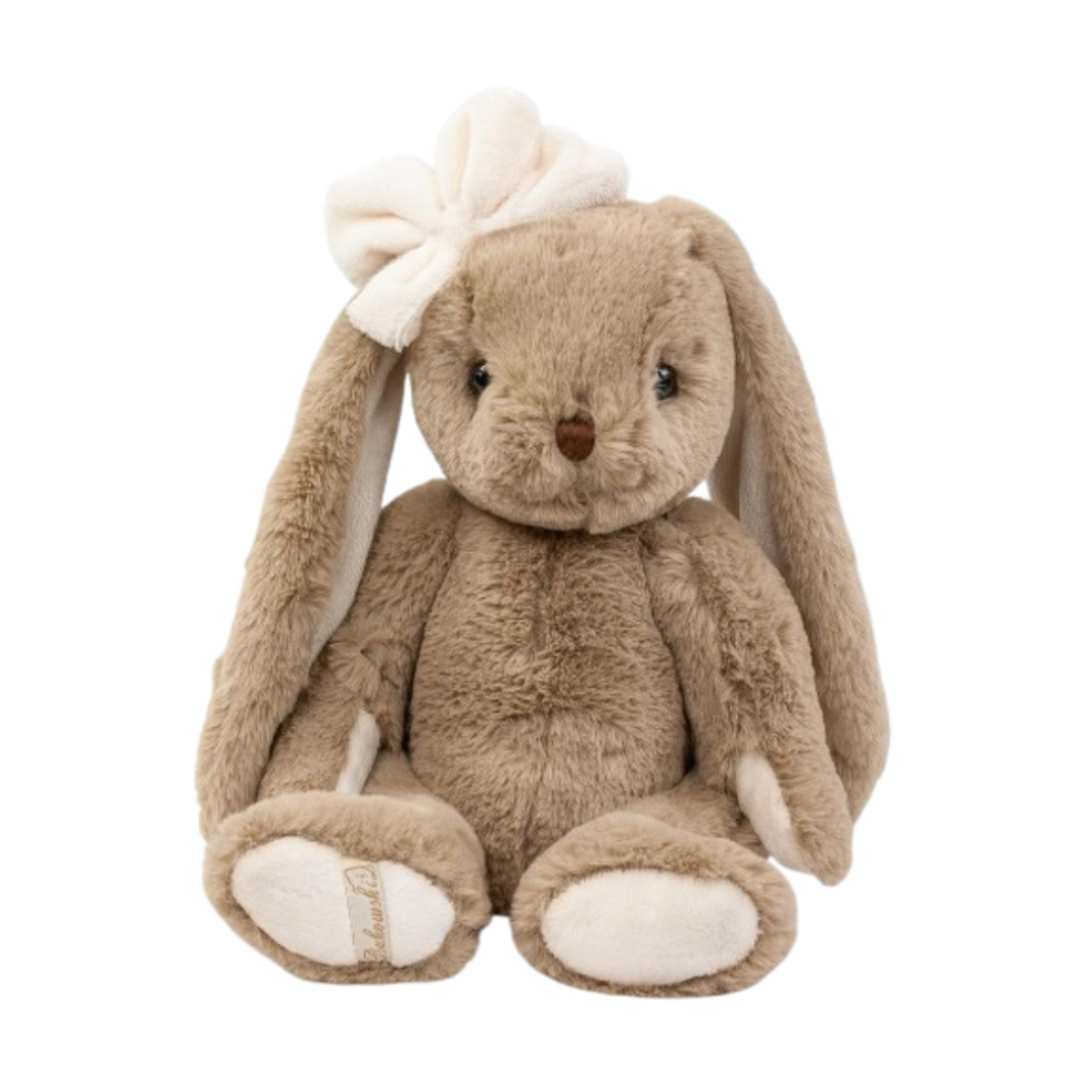 Bukowski Rabbit Gabrielle 40 cm, cuddly soft plush, brown, bow on the head, hand washable up to 30 °C. This cuddly soft plush toy called Gabrielle from the Bukowski brand will delight your child Are you looking for an appealing, long-lasting companion for your offspring? With its long, soft floppy ears, this rabbit will be the new, loyal friend. The brown fur of this cuddly toy is very fluffy and invites you to many cosy cuddly hours. The child-friendly design of the bunny is simply irresistible.