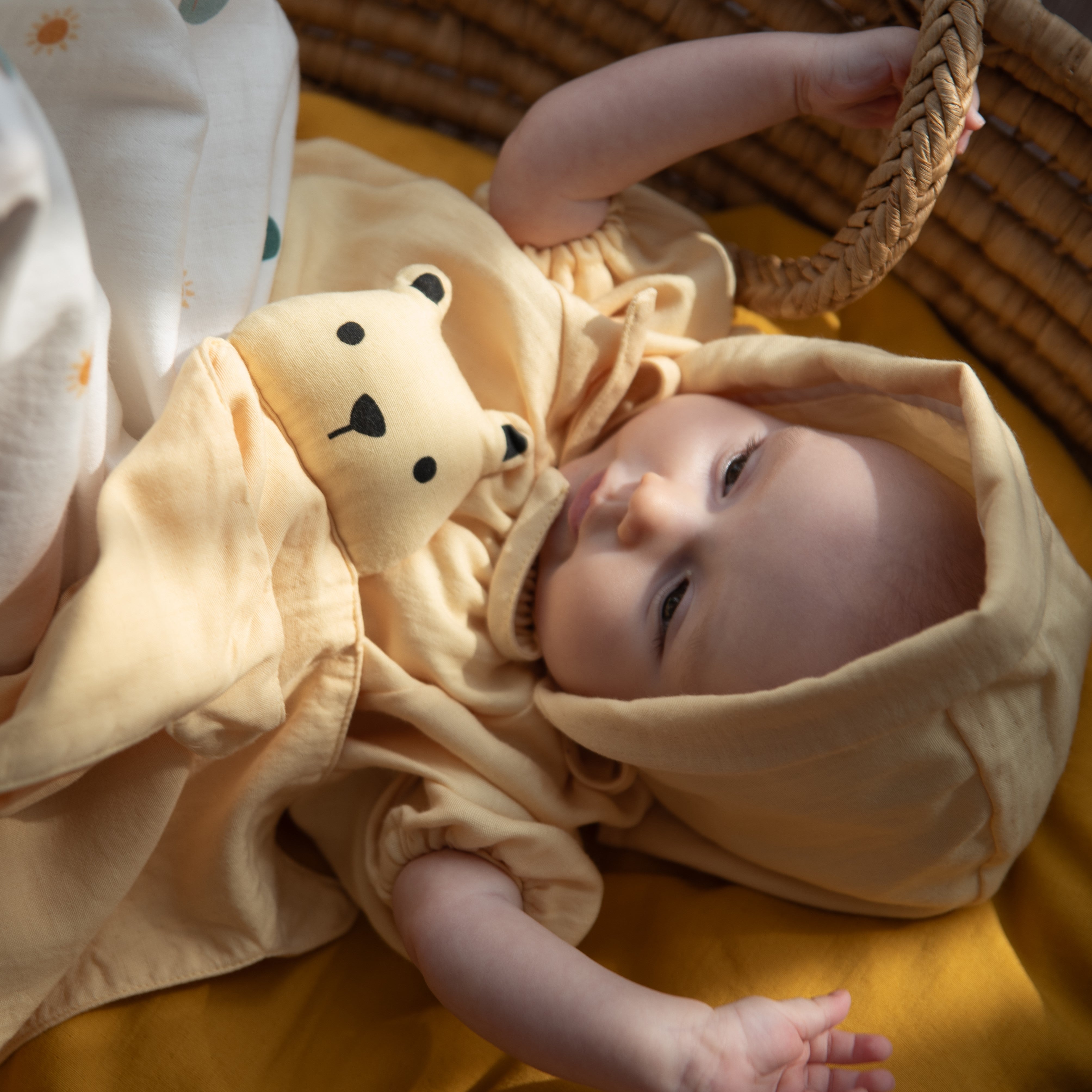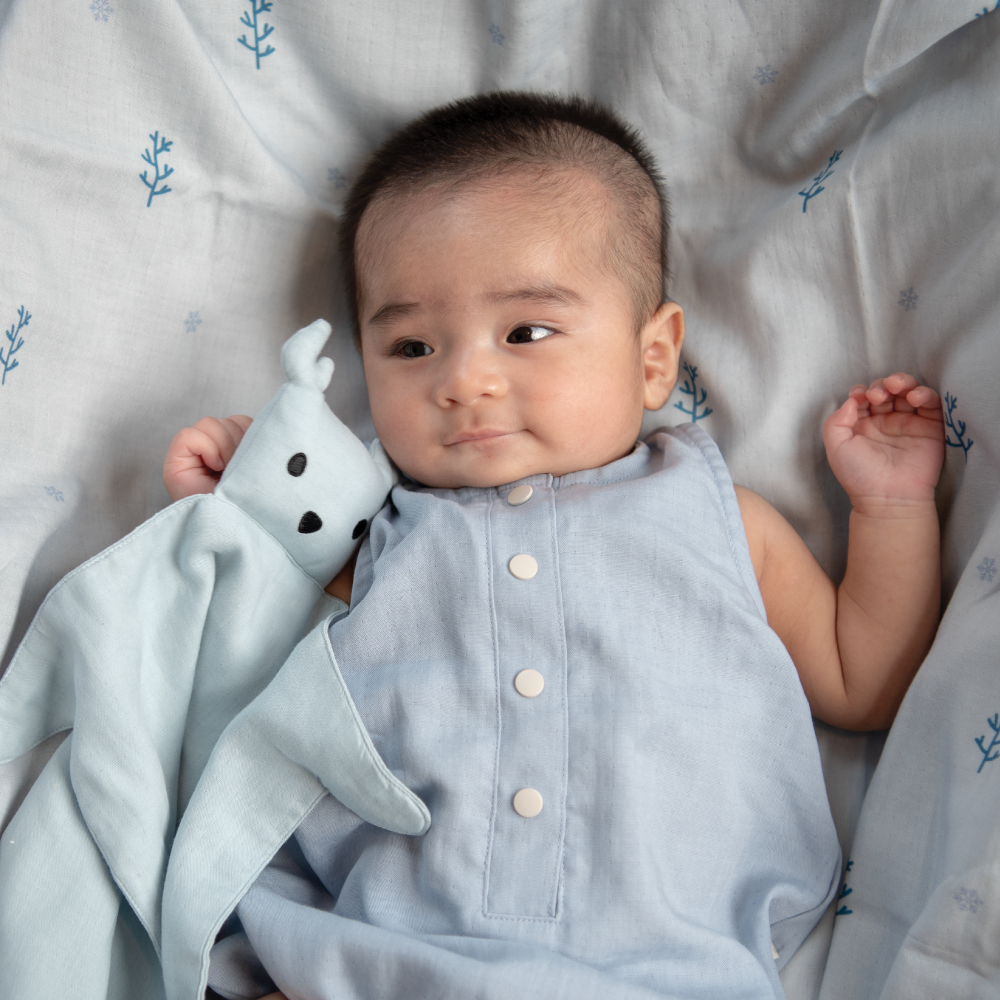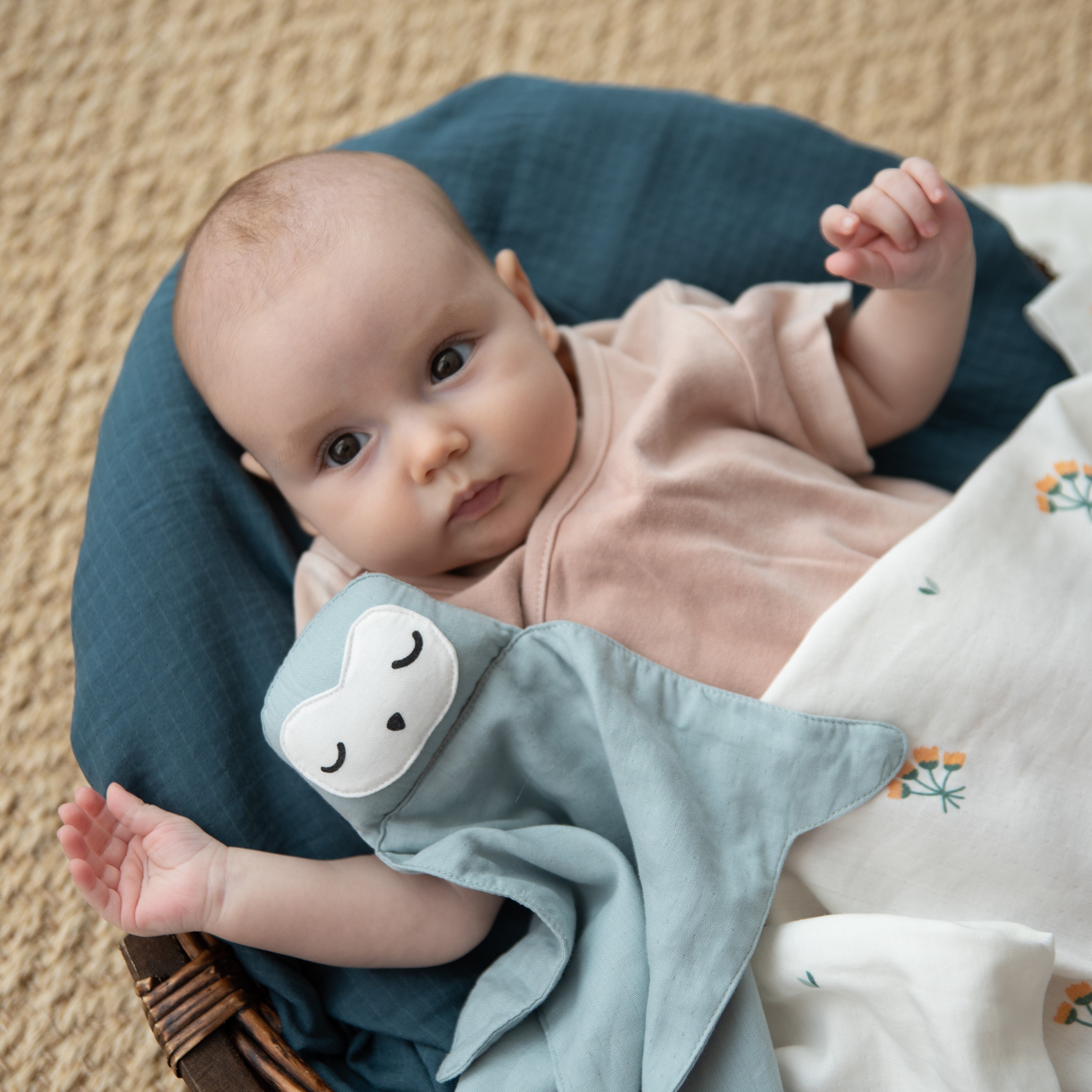 The soothing teether toy can be used to gently wipe away drool and helps support your baby’s developmental skills.