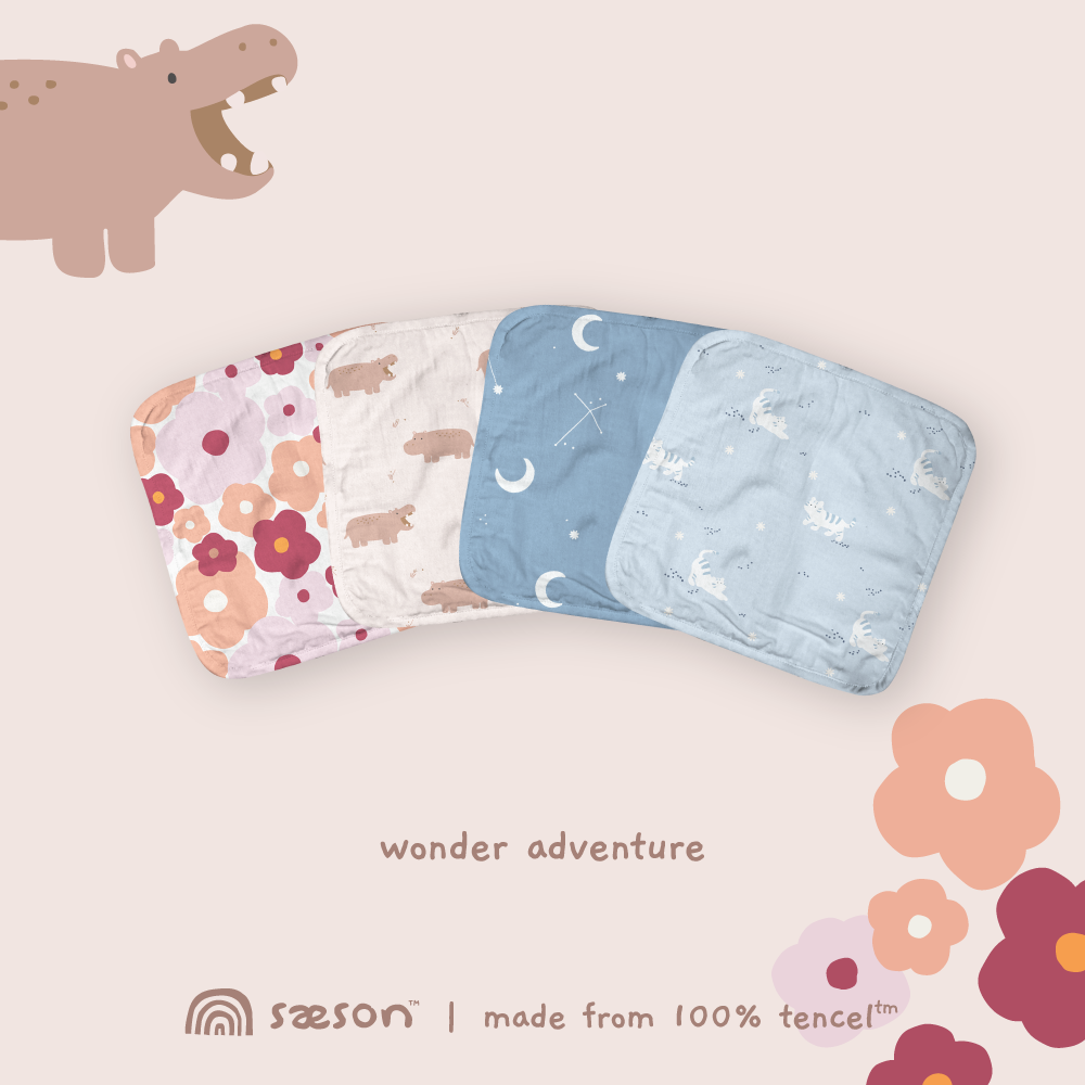 TENCEL™ Handkerchief Towels come in Seson’s signature colors and patterns, inspired by the beauty of all four seasons. Every color is thoughtfully produced using materials certified to OEKO-TEX® Standard 100, ensuring the highest safety standards—so parents can feel confident their little ones are well cared for.