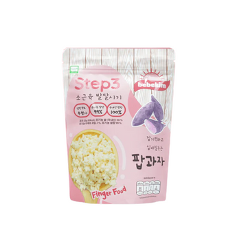 -Puff texture similar to popcorn, highly dissolvable in water, safe as a first snack. Rounded edges prevent gum injuries.