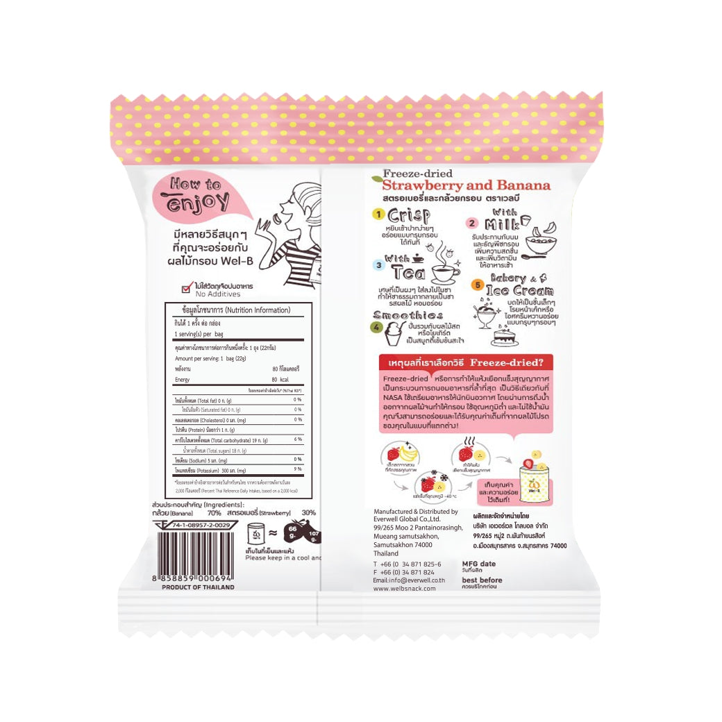 Wel-B Freeze-Dried Strawberry + Banana – Crispy Strawberry & Banana 16 g