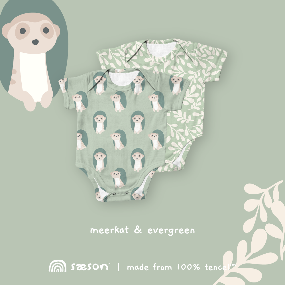 เซตบอดี้สูทวู้ดแลนด์ ชุดบอดี้สูทแขนสั้นจากเส้นใย Tencel 100% สำหรับเด็กแรกเกิดถึง 6 เดือน