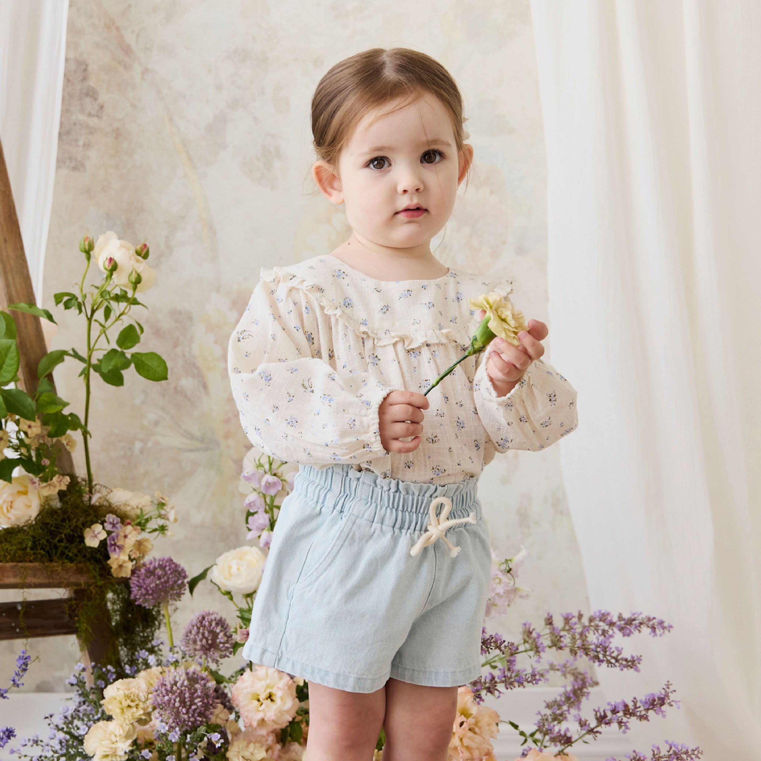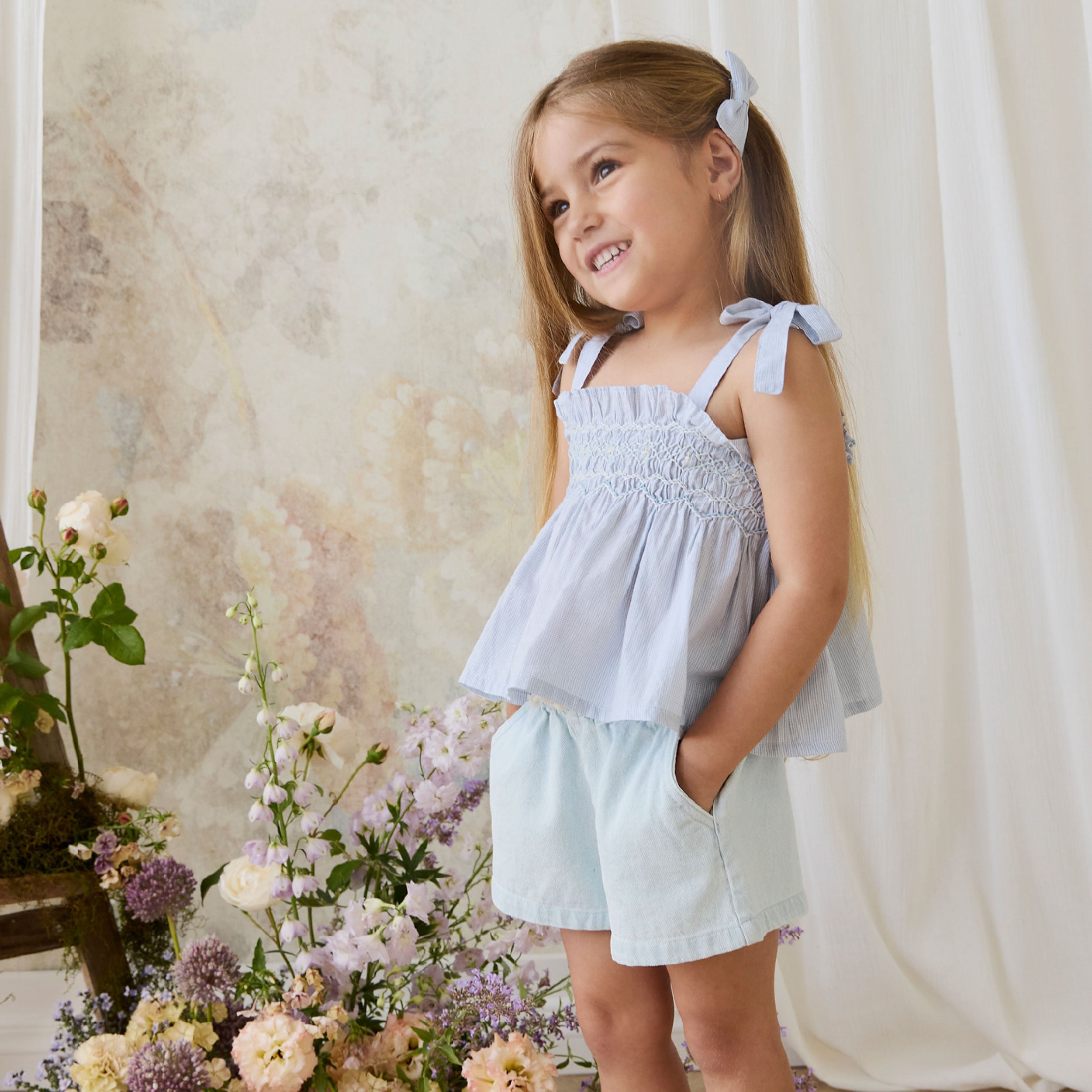 The Gaelle Short in Summer Clouds features a soft washed finish and relaxed fit perfect for sunny days and playtime adventures.