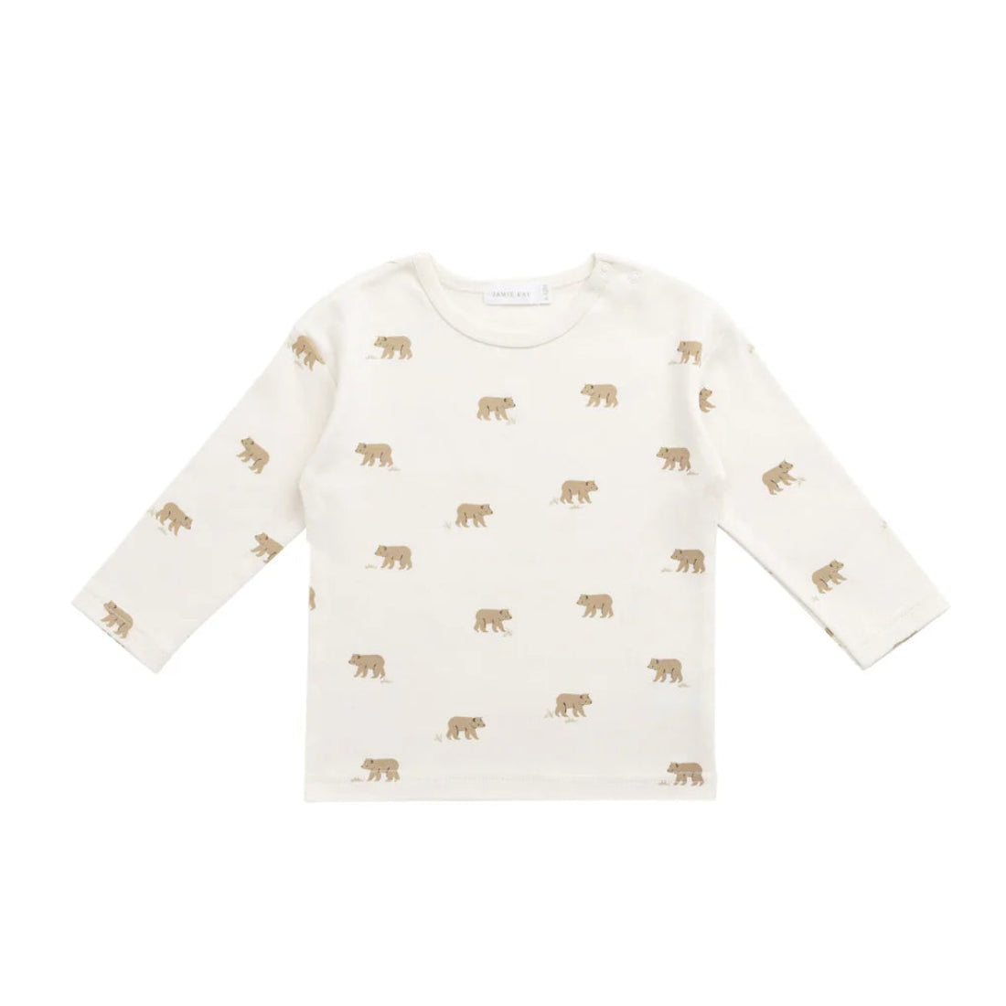A soft everyday essential featuring a cream base with an all-over bear cub print. Designed with a classic round neckline and long sleeves, perfect for layering or cooler days.