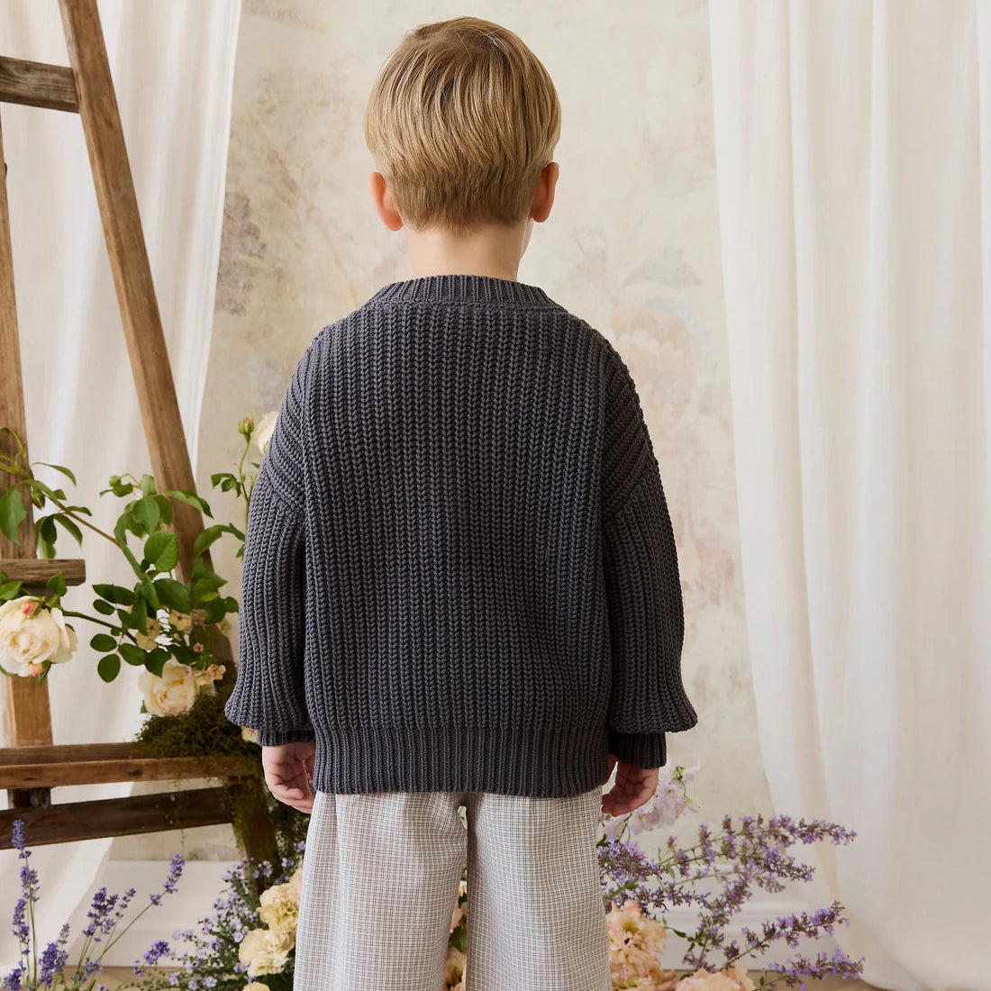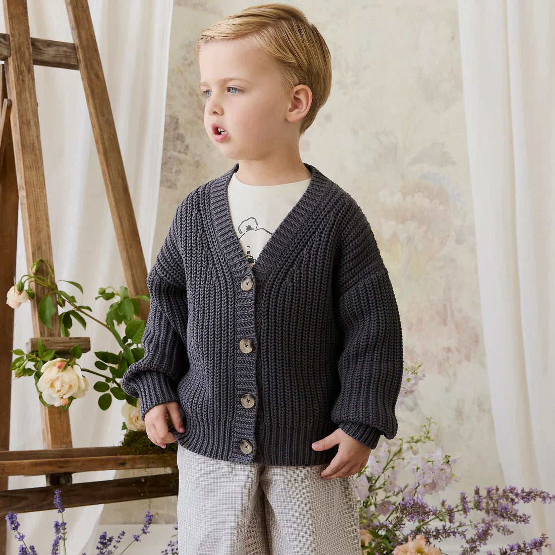 A timeless layering piece with a classic ribbed knit and relaxed silhouette. Perfect over dresses, tops, or rompers for an effortlessly elegant look.