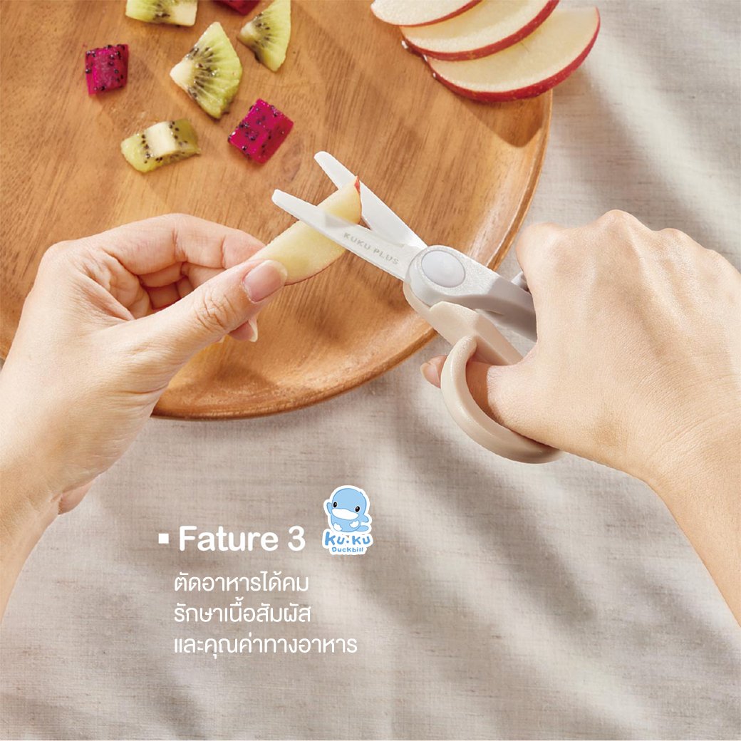The KUKU PLUS Ceramic Food Scissors are specially designed for safely and conveniently cutting baby food. Made from high-quality ceramic, the blades are rust-free and lightweight, allowing parents to cut food quickly while preserving its nutritional value. Ideal for both home use and on-the-go meals.