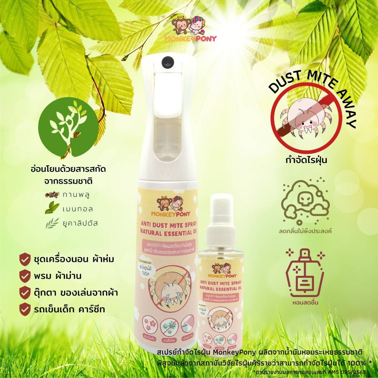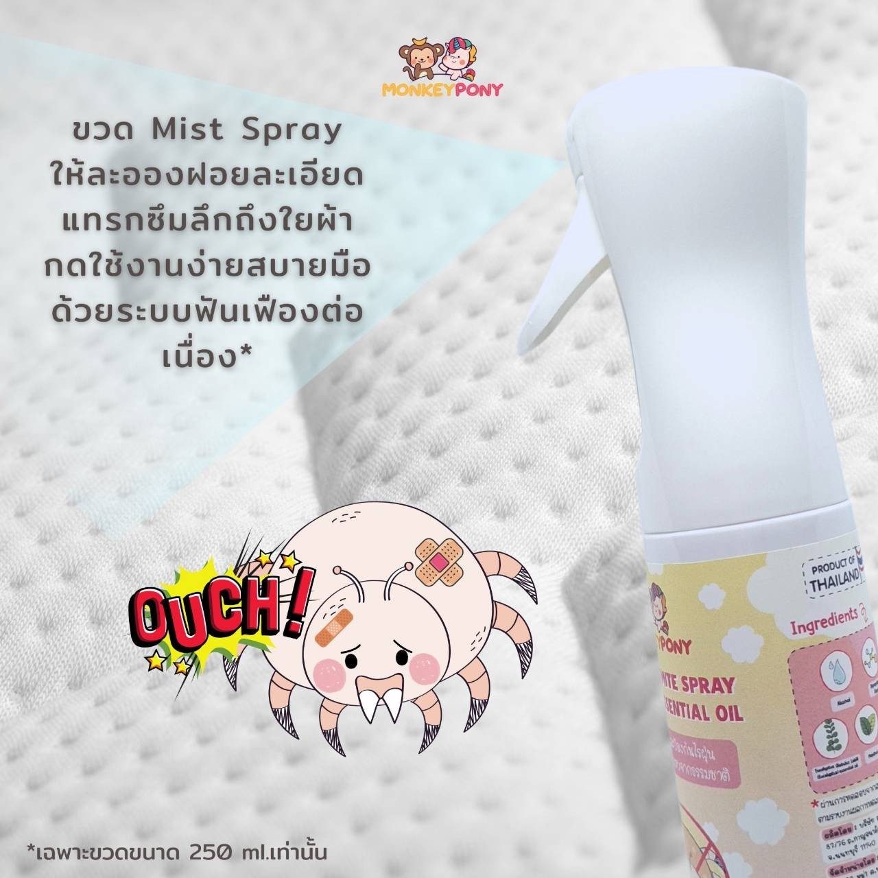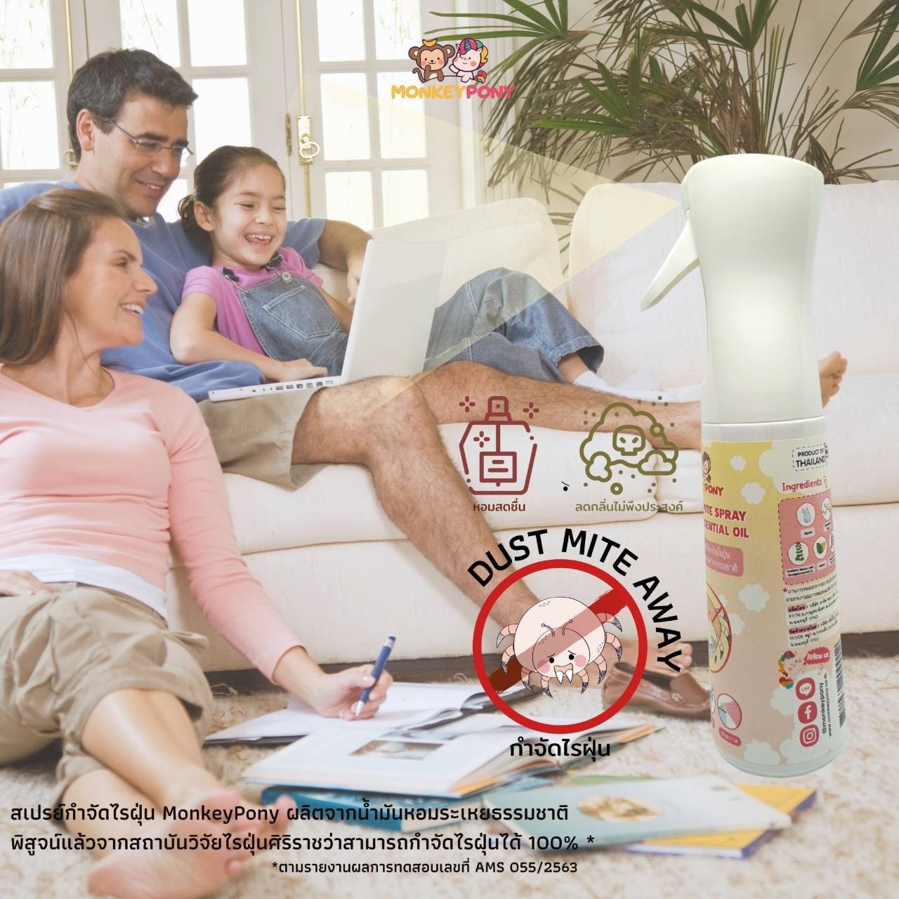 - สเปรย์กำจัดไรฝุ่น MonkeyPony พิสูจน์แล้วจากสถาบันวิจัยไรฝุ่นศิริราชว่ากำจัดไรฝุ่นได้ 100 %