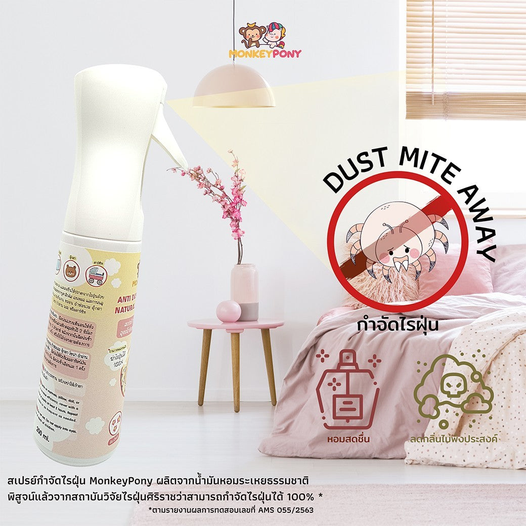 Monkey Pony สเปรย์กำจัดไรฝุ่น และป้องกันไรฝุ่น สูตรน้ำมันหอมระเหยจากธรรมชาติ Dust Mite Spray