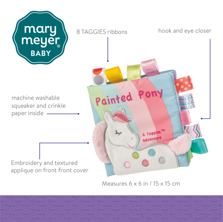 – 6×6″ Soft book featuring Taggies Painted Pony in a fun, calming, short bedtime story