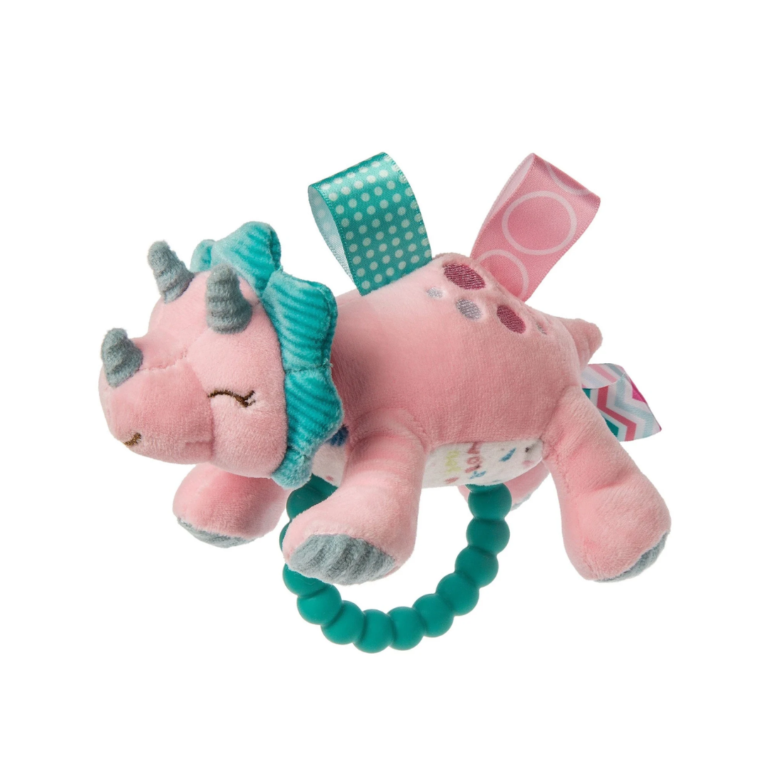 Taggies were born over 10 years ago when a mom noticed her kid's fascination with tags. Now the line has grown to include a Teether/Rattle combo. Little ones are love rubbing these soft, satin loops. Exploring Taggies provides tactile stimulation great for development.
