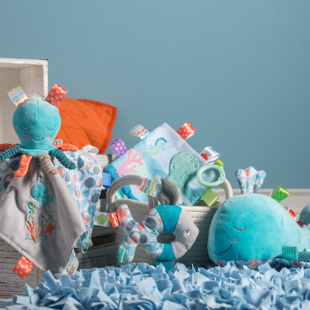 Ocean animals, especially in this lush aquamarine color, are hot right now. Taggies fans have always loved a punch of color. These toys are sure to swim into people’s hearts.