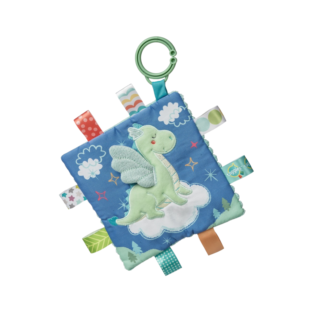 A true standalone item – Taggies crinkle squares are winning awards for their combination of stimulation (squeaker and crinkle paper inside) and soothing features (eight Taggies ribbons and textured fabric appliques).