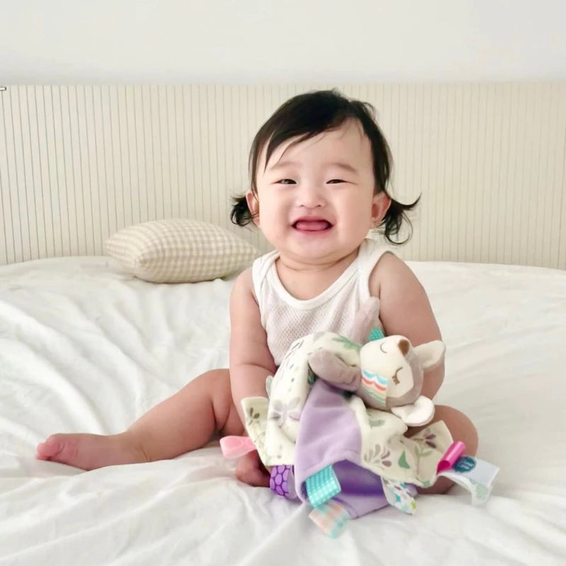ไอเท็มนี้มาในรูปแบบตุ๊กตาผ้ากอด ยอมใจให้กับความละมุนนุ่มนิ่มของทุกผิวสัมผัสที่ทางแบรนด์ตั้งใจเลือกใช้ผ้า แต่ละแบบเค้ามี Texture ผ้าที่แตกต่างกัน ริบบิ้นขอบผ้า ดีเทลและคู่สีที่ลงตัว เสริมพัฒนาการ Sensory skill ได้เป็นอย่างดี การันตีความน่ารักไม่ซ้ำใคร