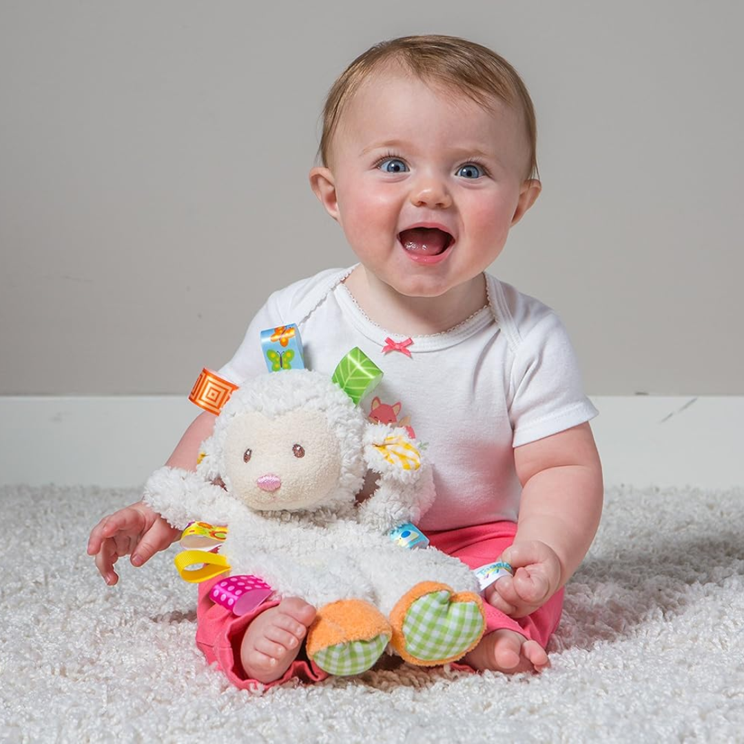 Taggies was born over a decade ago when a mom noticed her child's fascination with satin tags. This idea blossomed into a world of treasured products. Exploring Taggies textured tags can provide tactile stimulation that babies crave for development and have an amazing calming effect on little ones.
