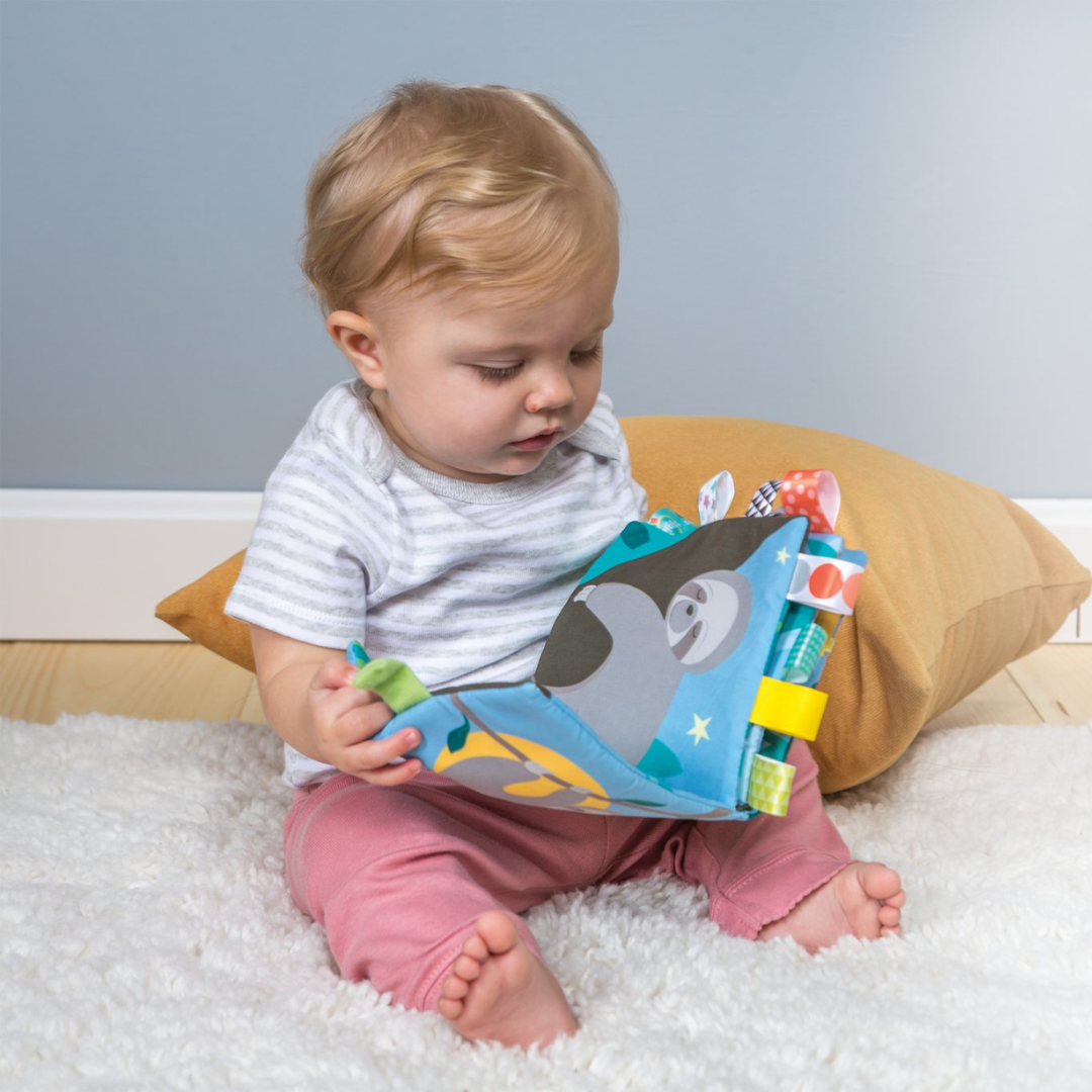 – 6×6″ Soft book featuring Taggies Molasses Sloth in a fun, calming, short bedtime story