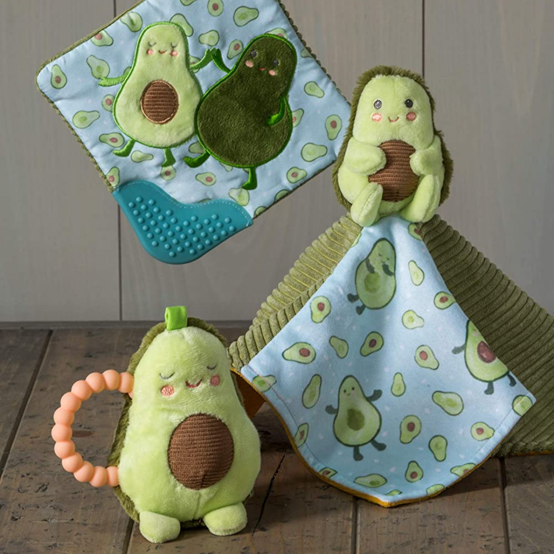 – Peach bead-like silicone teether sewn-in (not teal as shown in secondary photo)