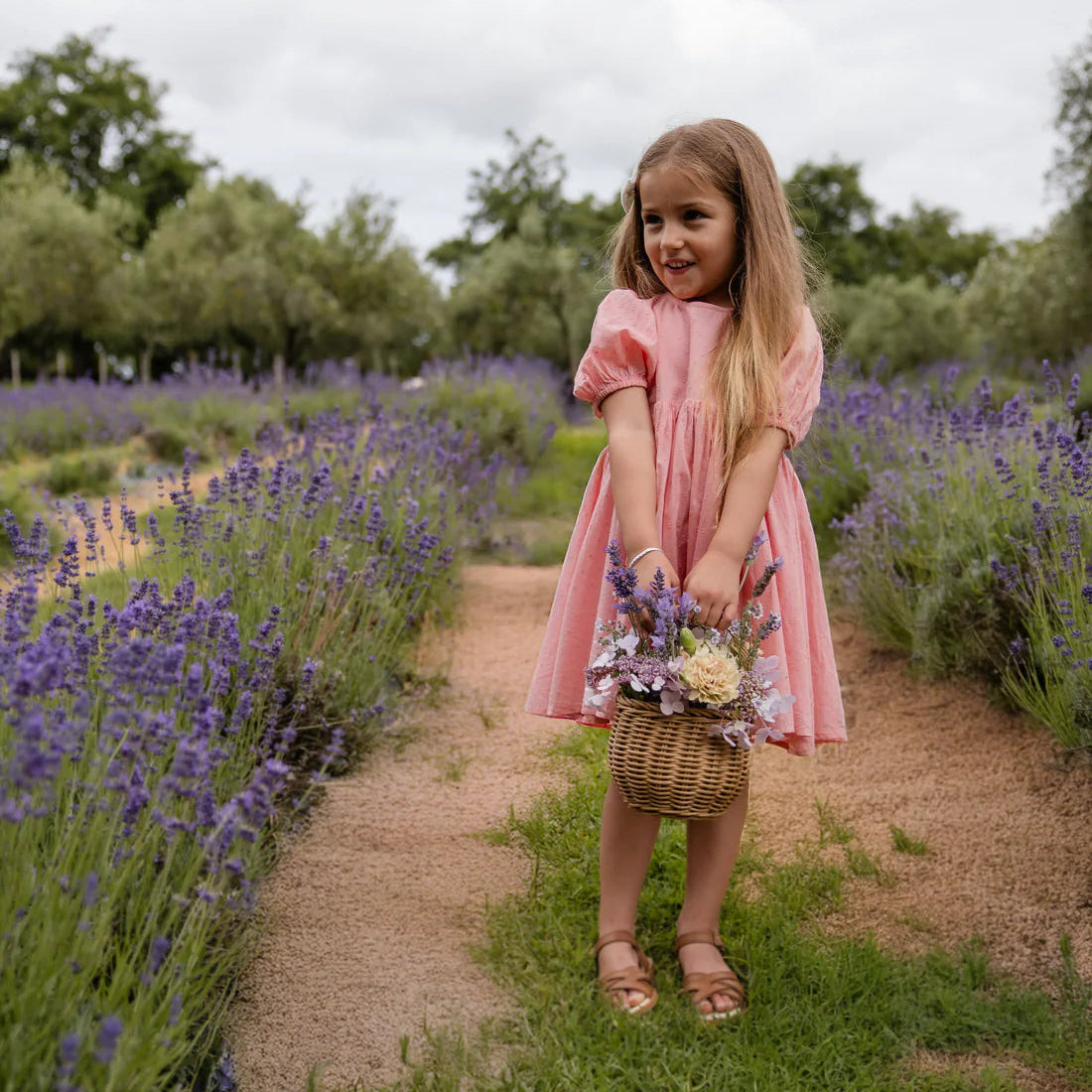 The Frannie Dress in Swiss Pink is a timeless and elegant piece, featuring puffed short sleeves, a softly gathered bodice, and a flowing skirt. The delicate Swiss dot texture adds a subtle touch of charm, perfect for warm days and special occasions.