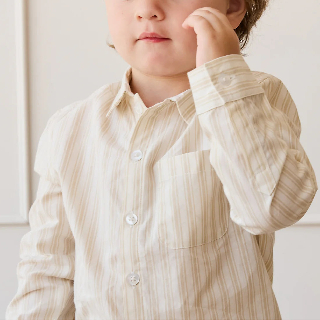 Jamie Kay Organic Cotton Isaiah Shirt - Variegated Stripe Foam Collection Bonjour Cherie