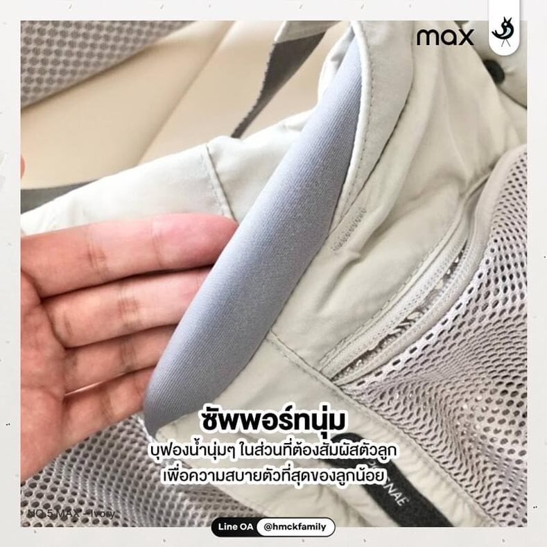 Cushioned hip seat pad – supports baby’s hips and thighs in a natural sitting position.