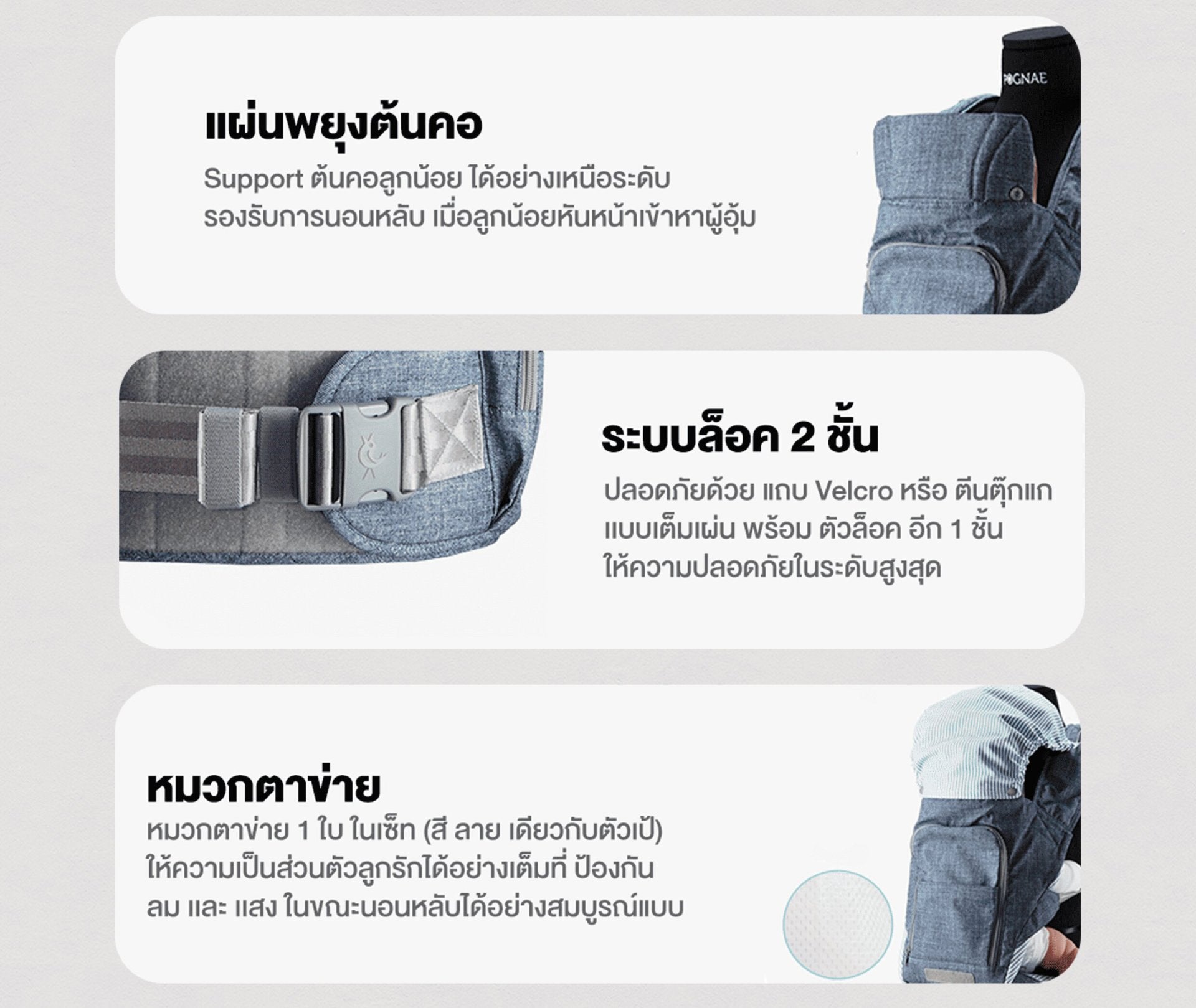 A newly designed baby carrier suitable for 3–48 months (up to 20 kg), providing comfort and support for both parent and child in every carrying position.