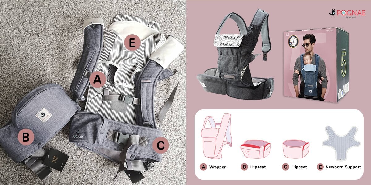 Designed for babies from newborn up to 20 kg, the Pognae No.5 Plus allows adjustable use according to your child’s age. Each component can be combined or detached to create different carrying styles using zippers.