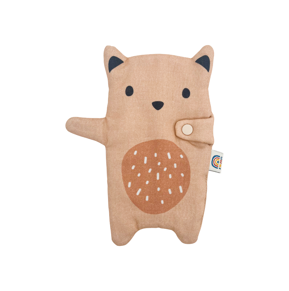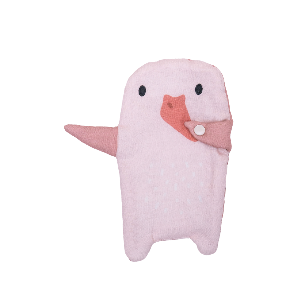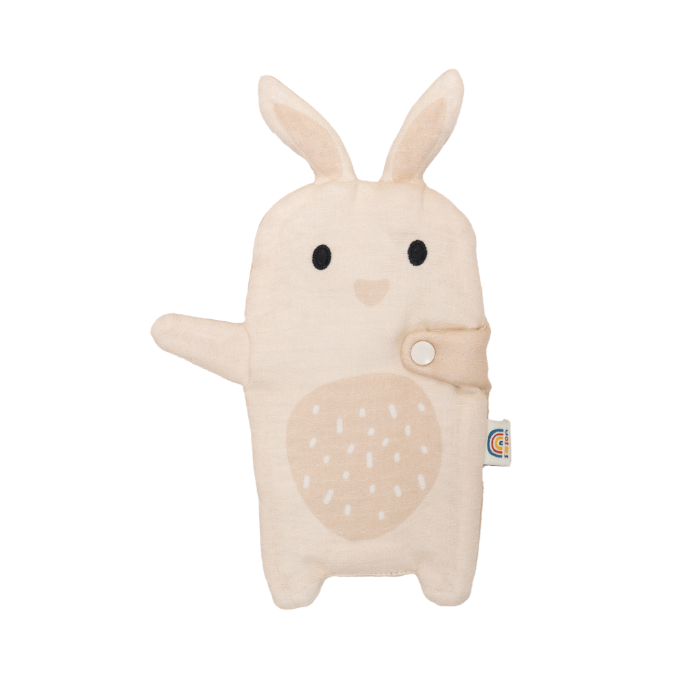 Designed for babies to cuddle while sleeping, this pacifier cuddler feels like a mother’s gentle hand resting on the chest—providing warmth, comfort, and emotional reassurance. The end features a loop for attaching a pacifier, helping prevent it from getting lost and making it easy to clean. Suitable for newborns and up.