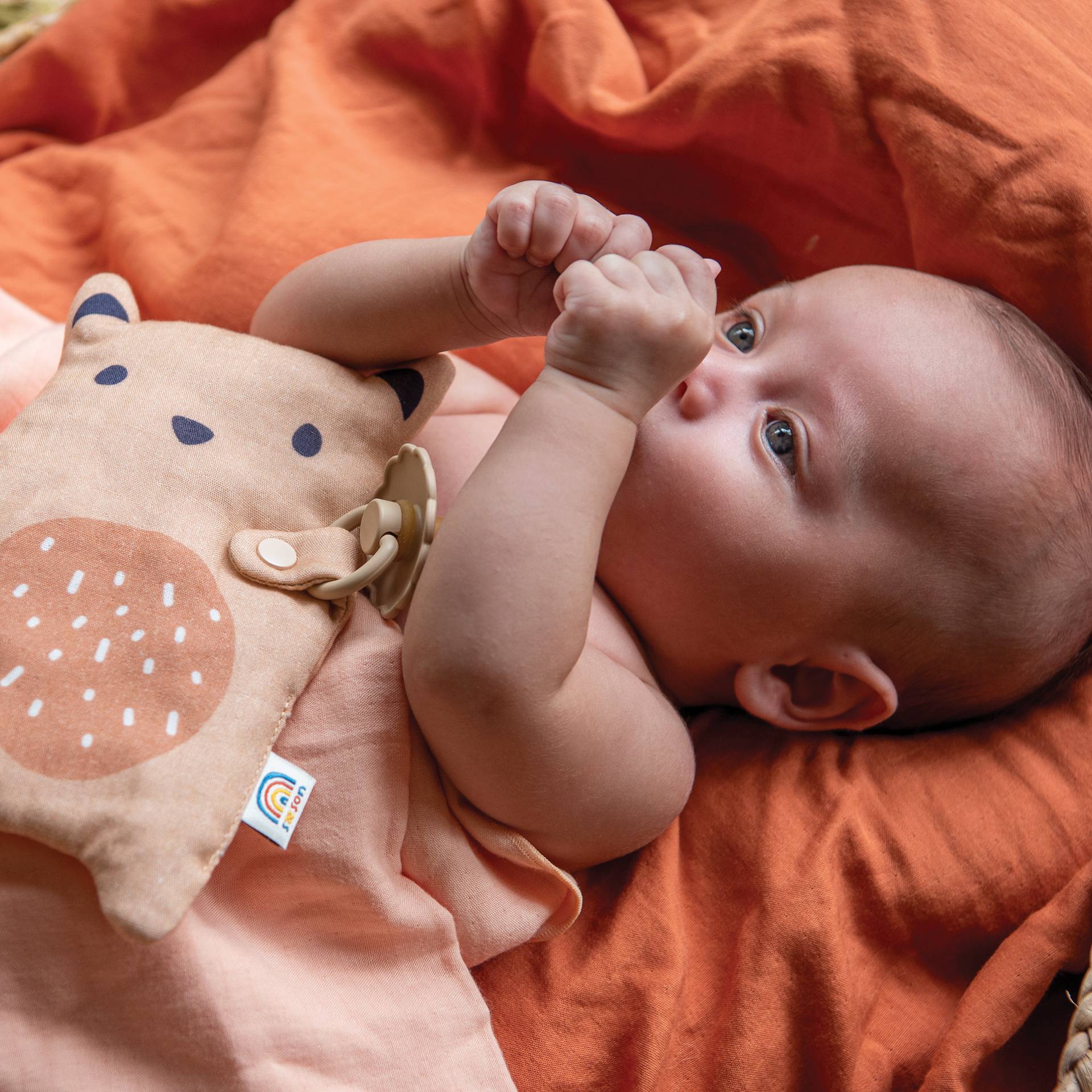 Made from TENCEL™ fibers, the pacifier cuddler offers exceptional softness and is safe for your little one’s delicate skin.