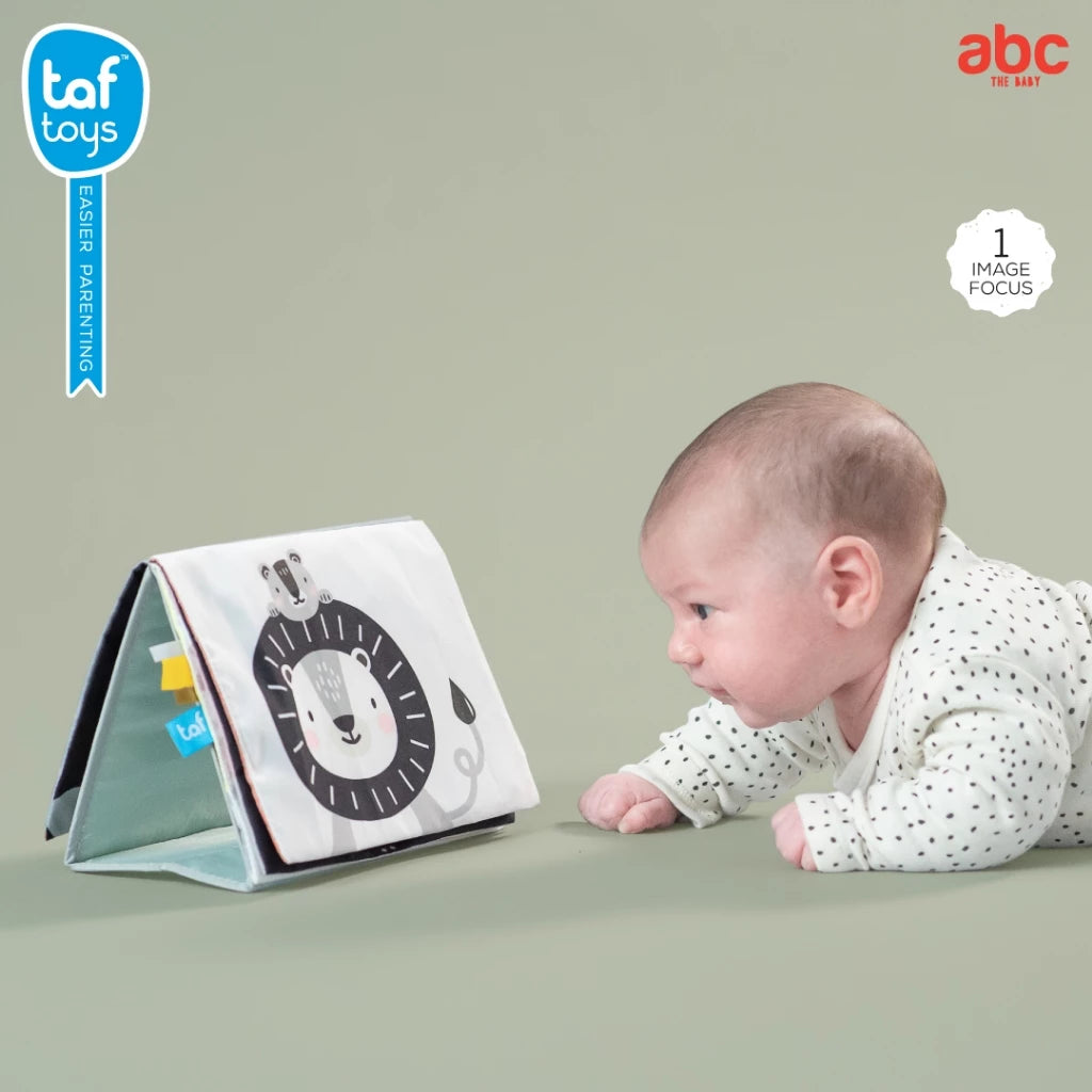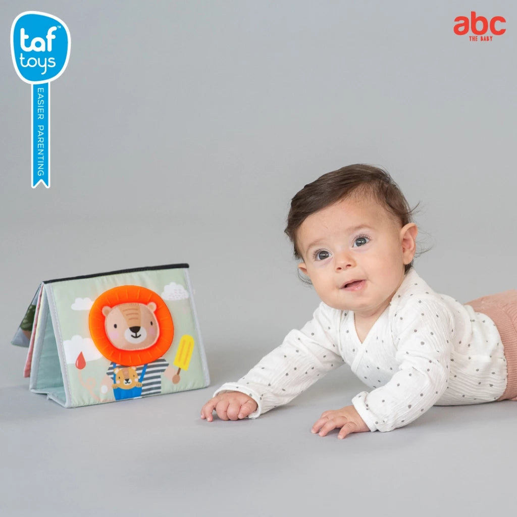 หนังสือผ้าหน้าย่นสองด้าน "Tummy-time Book” มาพร้อมภาพประกอบสุดน่ารัก ที่ออกแบบมาเพื่อกระตุ้นให้ทารกฝึกยกศีรษะและคอขึ้นในระหว่างการ tummy-time ได้นานยิ่งขึ้น 👶🏻