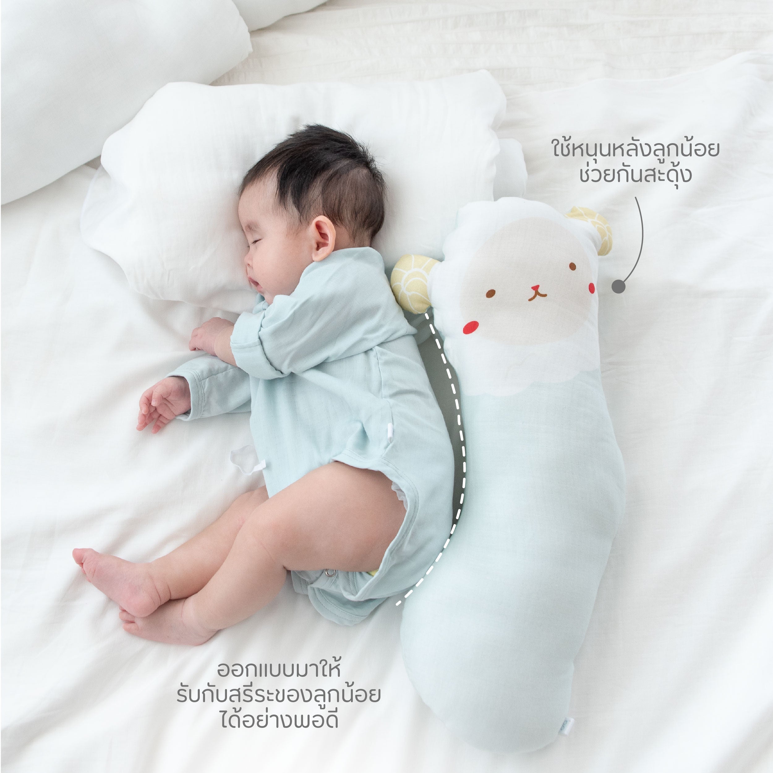 หมอนข้างเพื่อนรักโฉมใหม่ อัปเกรดด้วยดีไซน์ 2 หน้า ผลิตจากเส้นใย Tencel™ ที่มอบสัมผัสนุ่มลื่นและเย็นสบายตลอดคืน ด้วยรูปทรงโค้งมน ออกแบบมาให้รับกับสรีระของลูกน้อยได้อย่างพอดี ใช้ได้ทั้งปรับท่านอน หนุนหลังกันสะดุ้ง หรือกอดไว้เป็นเพื่อนคู่ใจในยามหลับ