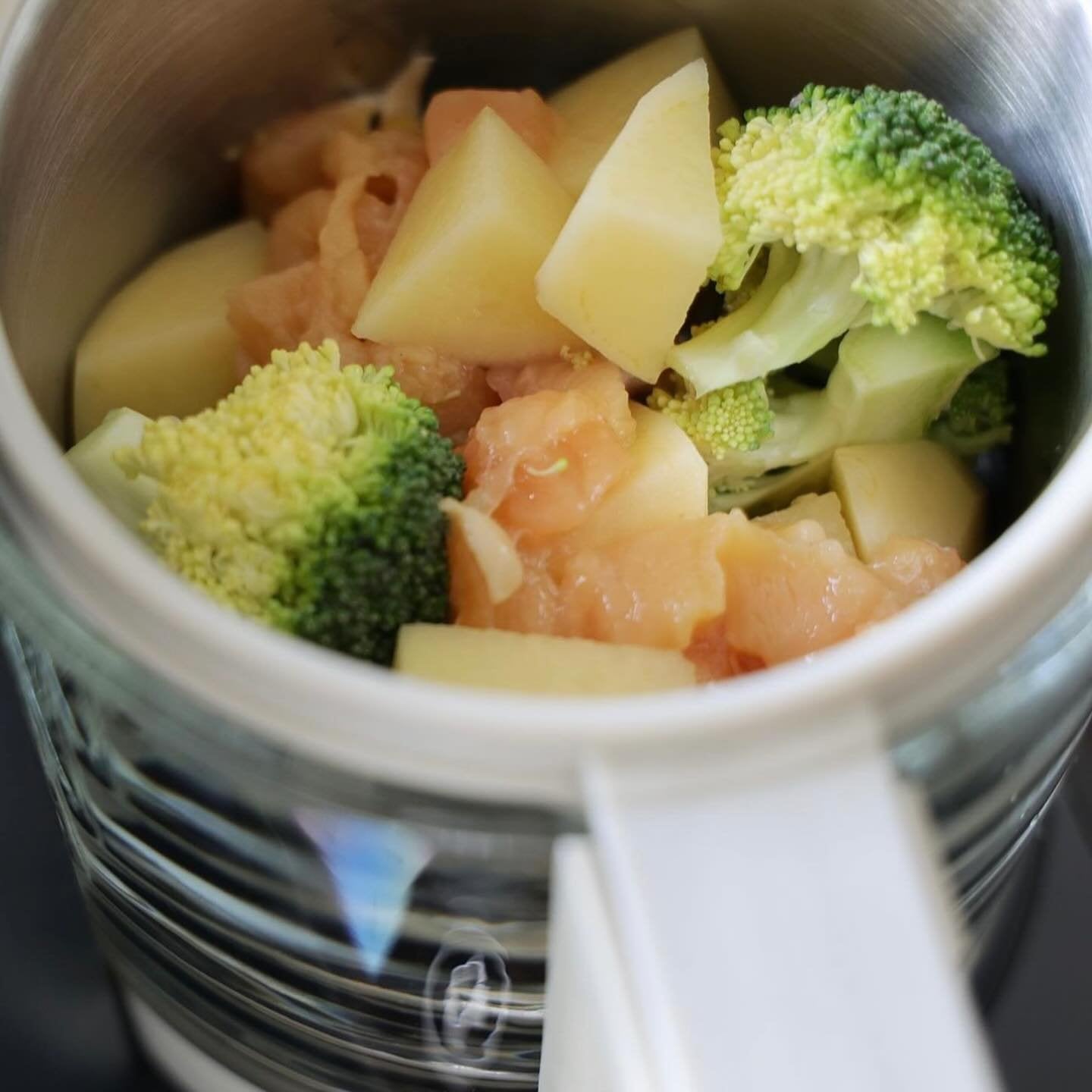 -ตะกร้านึ่ง แยกจากโถปั่น เพื่อแยกสัดส่วนของอาหารและน้ำ มาพร้อมด้ามจับเพื่อความสะดวกในการใช้งาน