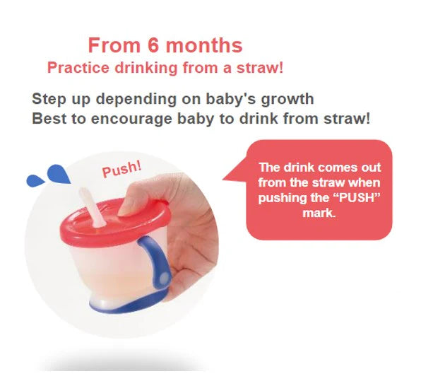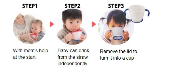 เหมาะสำหรับเด็กวัย 6 เดือนขึ้นไป หรือสำหรับน้องที่ยังใช้หลอดไม่เป็นโดยเฉพาะ สามารถใช้ได้จนโตน้องๆ (8+เดือน) ใช้ดูดเองโดยไม่ต้องกดช่วย และ (18+เดือน) เปิดฝาเป็นถ้วยยกดื่มได้ สามารถถอดล้างทำความสะอาดได้ทุกส่วน และ