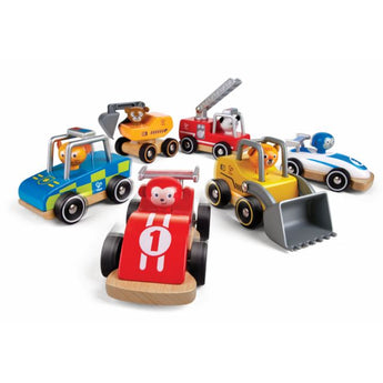 ยานยนต์ของเหล่าสัตว์ป่าเลือกรถที่ชอบพกพาง่ายที่น่าทึ่งเหล่านี้ จะ 1 คันหรือทั้งหมด ไปพร้อมกับคนขับประจำการที่เป้นเหล่าสัตว์ป่าแสนน่ารักทั้งหลายรถไม้สุดน่ารัก ที่แตกต่างกัน 6 แบบ ได้แก่ รถแข่ง รถเครน รถขุดดิน รถดับเพลิง รถตำรวจ ล้อฟรี เคลื่อนที่ได้อิสระ และเจ้าของพวงมาลัยที่เป็นสัตว์ป่า 6 ชนิด! หัวของเจ้าสัตว์หมุนได้ วัสดุแข็งแรงคงทน ขอบไม้มนไม่มีคมเสี่ยน