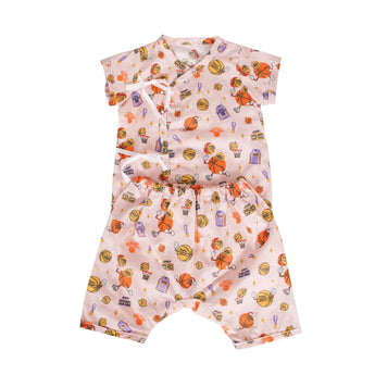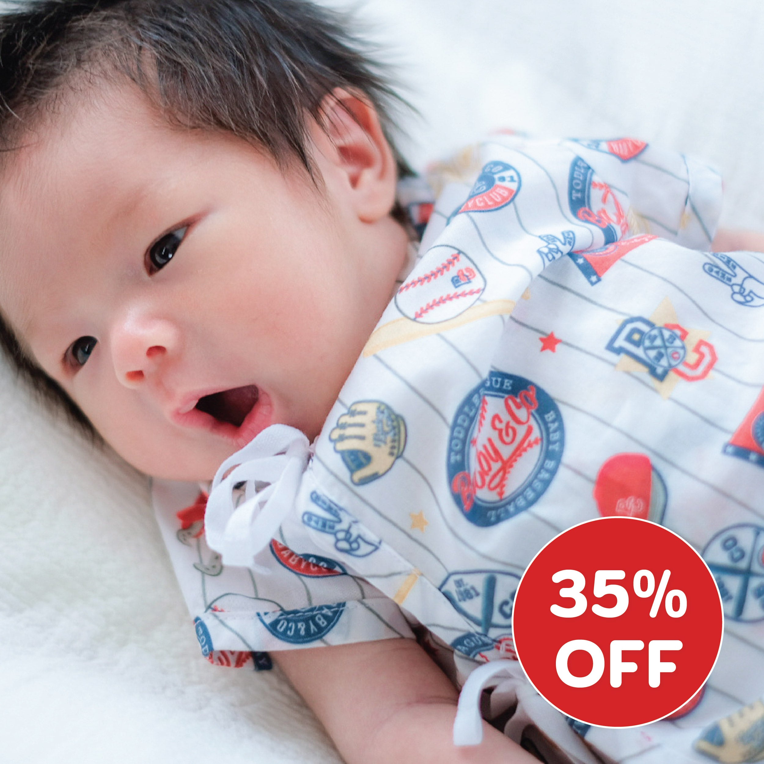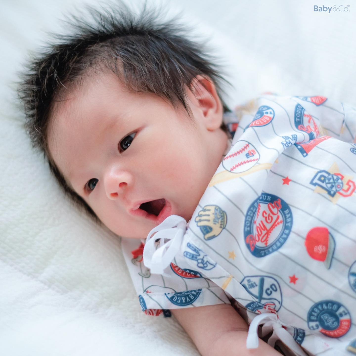 ชุดเด็กแรกเกิดรูปแบบสายผูกที่สามารถปรับระดับความพอดีได้ตามรอบตัวทั้งด้านในและด้านนอก มาพร้อมด้วยกางเกงที่ได้ออกแบบมาเพื่อการสวมทับผ้าอ้อมสำเร็จรูปด้วยดีไซน์ที่ช่วยลดการรั้งเป้ากางเกงแม้สวมผ้าอ้อมในระหว่างวัน ช่วยให้ลูกน้อยไม่รู้สึกอึดอัด และเนื้อผ้าที่ใช้เบอร์ด้ายที่ละเอียดกว่าและบางกว่าเนื้อผ้าอ้อม จึงทำให้สามารถระบายอากาศได้ดียิ่งขึ้น เหมาะกับอากาศร้อน