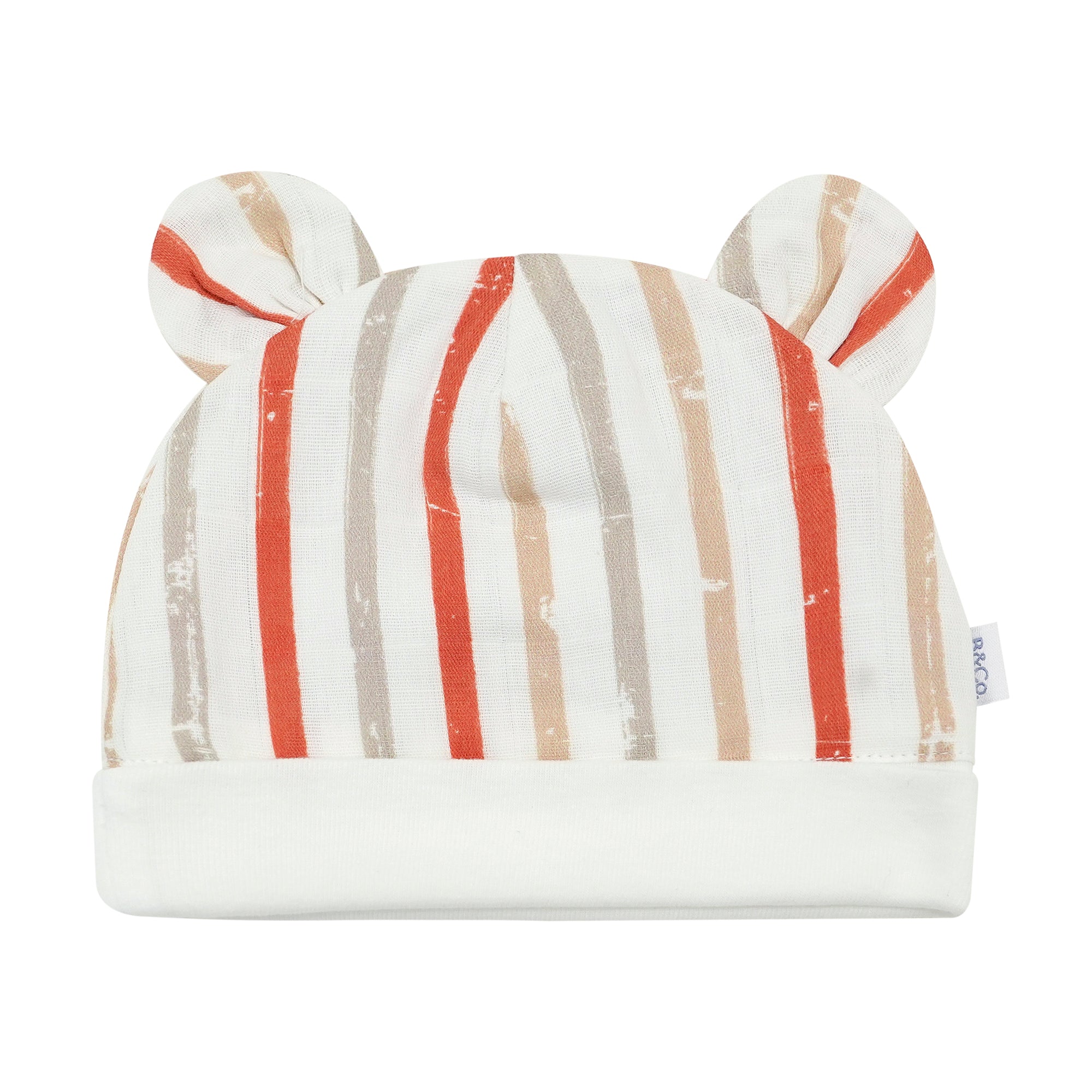หมวกสำหรับเด็กทารก สัมผัสนุ่มสบาย มีซับในปิดบังตะเข็บเพื่อไม่ให้เกิดการระคายเคือง ยืดหยุ่นตามขนาดของศรีษะที่สวมใส่ และมี Anti-bacteria ลดความอับชื้น