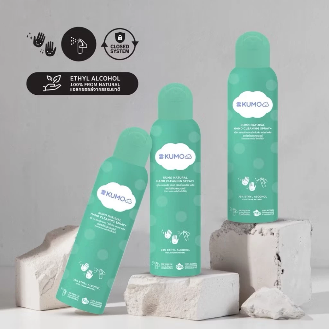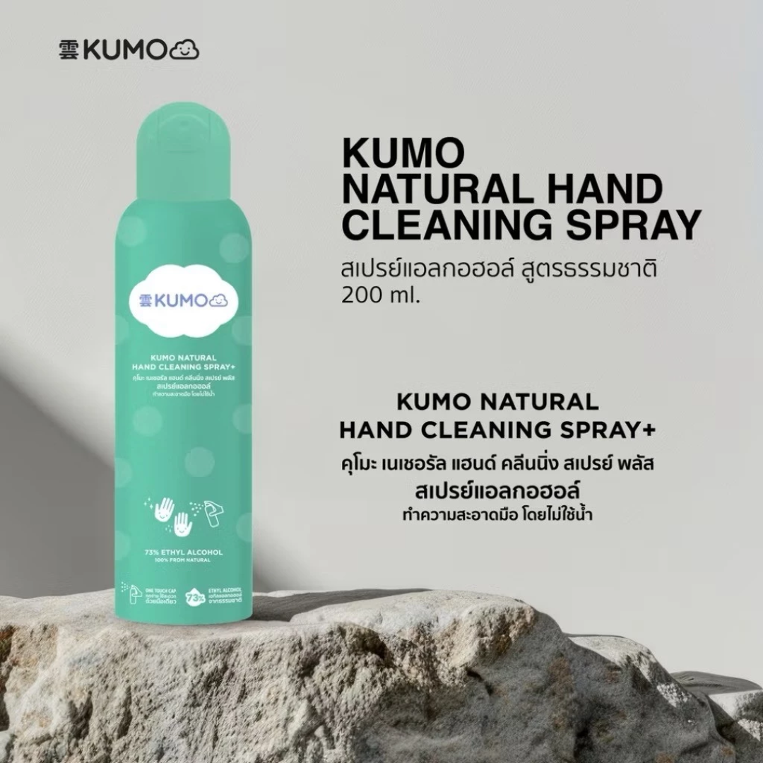 KUMO คูโม สเปรย์ทำความสะอาดมือ สูตรแอลกอฮอล์ธรรมชาติ 73% แบบพกพา ขนาด 200 มล. (อัดแก๊ส)